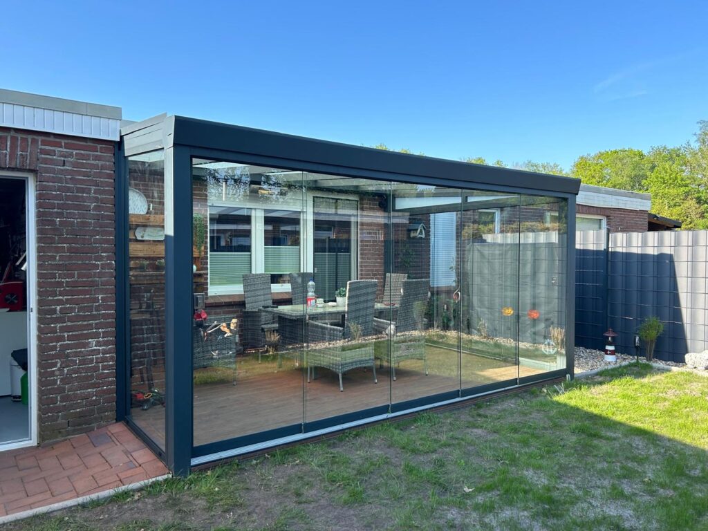 Perfekt für alle, die das Draußen länger genießen möchten: Ein Kaltwintergarten ist die natürliche Weiterentwicklung einer Terrassenüberdachung. Durch hochwertige Seitenelemente entsteht ein geschützter Raum, der lichtdurchflutet bleibt und dennoch zuverlässig vor Wind, Regen und Außengeräuschen schützt. Er ist ideal für gemütliche Nachmittage im Frühling, entspannte Abende im Herbst oder das stille Beobachten der Natur an klaren Wintertagen.